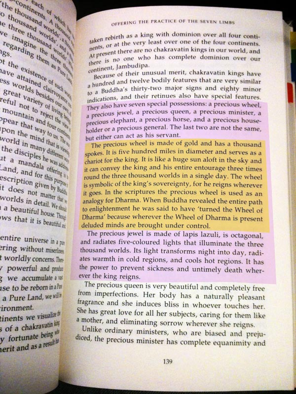 Wow! So I didn’t see anything on the precious umbrella, but maybe I was drawing the precious wheel! This is distinguished form the Wheel of Dharma… I’m gonna add some more page shots with the wheel highlighted… see if it reminds oyu of anything! 😉