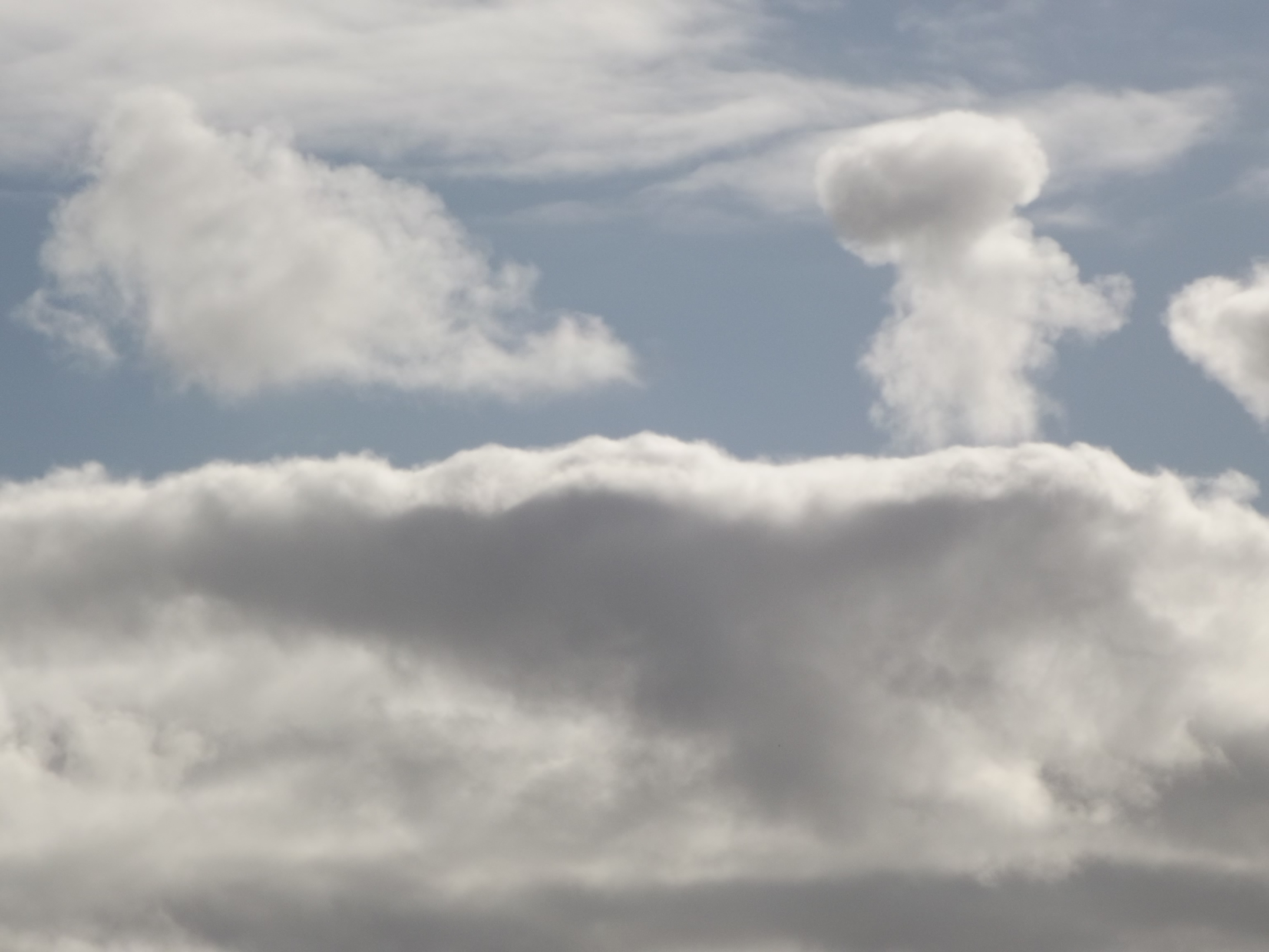 Hallo, very interesting clouds indeed. The first one reminds me of a peace dove and the second one like a babjij says: a Jelly fisch cloud. Beautiful.