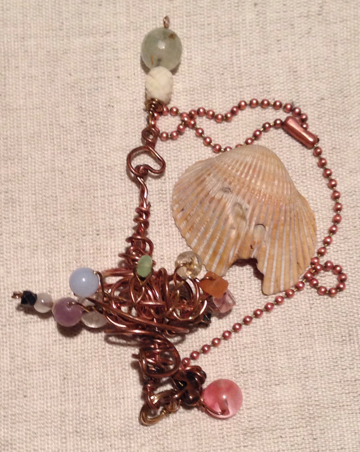 Still chanting, I waded a little in to the (cold!) surf, and lowered the pendulum into the bare sand and gently lapping water. I continued for a few minutes, sometimes with my eyes closed. At some point, I opened my eyes, and saw the water had left a shell as a thank you gift for me (see photo above).