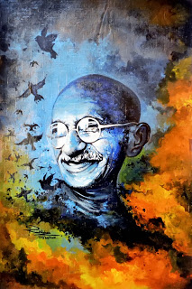 Image caption: Mahatma Gandhi, Portrait by Rajesh Nakar – Oil on paper