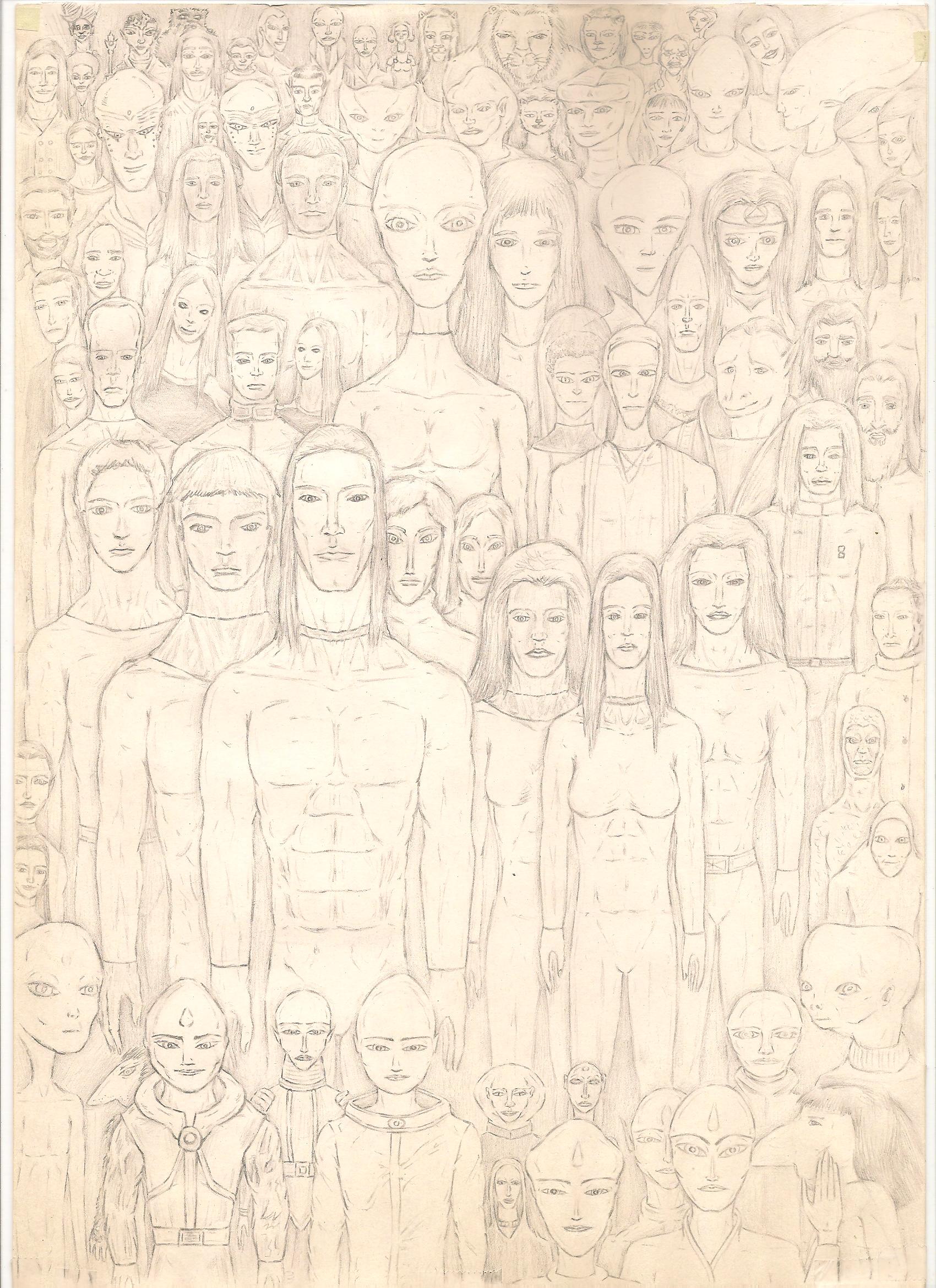 I didn’t add colours because this would take sooo much time and energy because if I’d choose to do that, then I’d make myself to draw a great variety of their costumes, of their decrees, of their genetic variety etc. You can find more information about the different contactee cases in a specific series of books (and of course other sources) which’s title starts like this’ UFO Contact from…’ where the co writer is the known (not anymore between us) ex military contactee Stevens Wendell. Search to Google and Youtube, you’ll find lots of videos & material of interviews and documentaries about different contactee cases and persons.