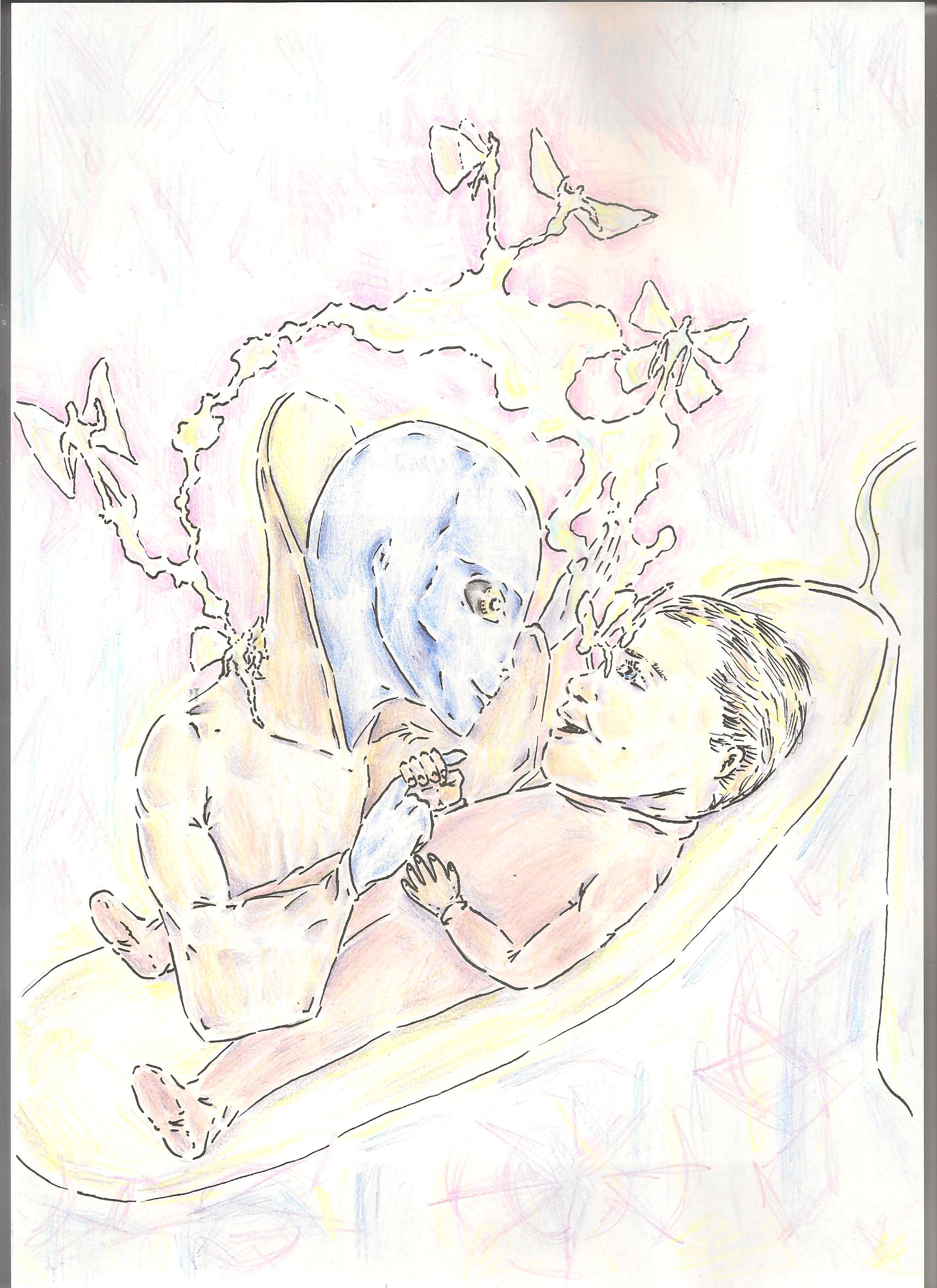 2. Your drawings are becoming so detailed KP love them especially the Arcturian playing with the baby. When you see babies they tend to look past you at times smiling and cooing this has always made me think of the Angels playing with these blessed gifts from God.