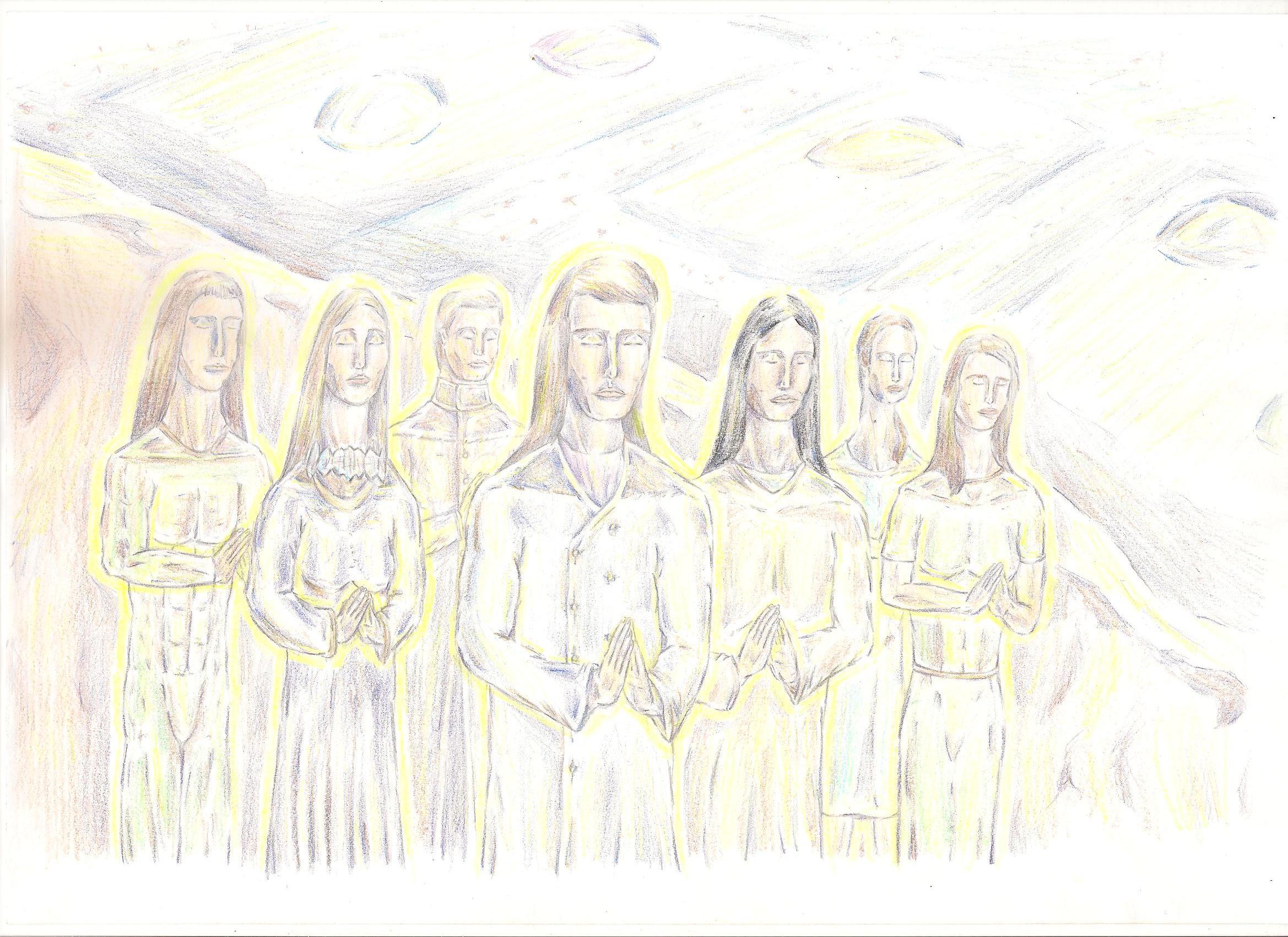 I was also thinking to do one of the Divine Hierarchy like Angels, Elemental Beings & Masters, Galactic Personnel or one of the malevolent ones, or at least the ones who were ex malevolent as I’ve heard about the Annunaki…but then I got dizzy =) … The second team portrait comes from the description of the Nibiruan Council by Jelaila Starr. In the two team portraits I’ve generally included beings from Pleiades, Andromeda (some of them, included the Zenetae race), Coma Berenices, Sirius (A,B,C), Arcturus, Centauri, Tau Ceti, Lyra, Orion, Aldebaran, Draco, Rigel, Betelgeuse, (didn’t add from Zeta Reticuli) Cignus Alpha (Larga), Venus, Jupiter, Vega, Erra, Janos, Akart, Apu, Verdant, Korundor, Thiaoouba, Koldas, Oktra, Itibi-Ra 2, Arien, Ummo,Lemurians, Atlanteans, Agarthians, Yeti beings, Hybrids and some beings from other Universes and Dimensions.