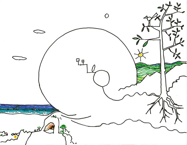 a "channeled" mandala focused on present, future and ancient greece, indicating inner worlds, the surface world, and outer worlds (leslee hare 2010)