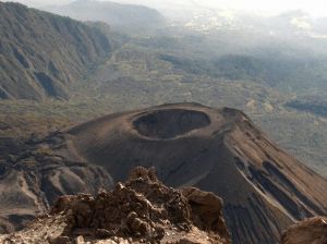 This photo of Mount Meru from Christof Buser (the buser.mobi gallery) shows the mouth of the volcano, which most recently erupted in 1910.